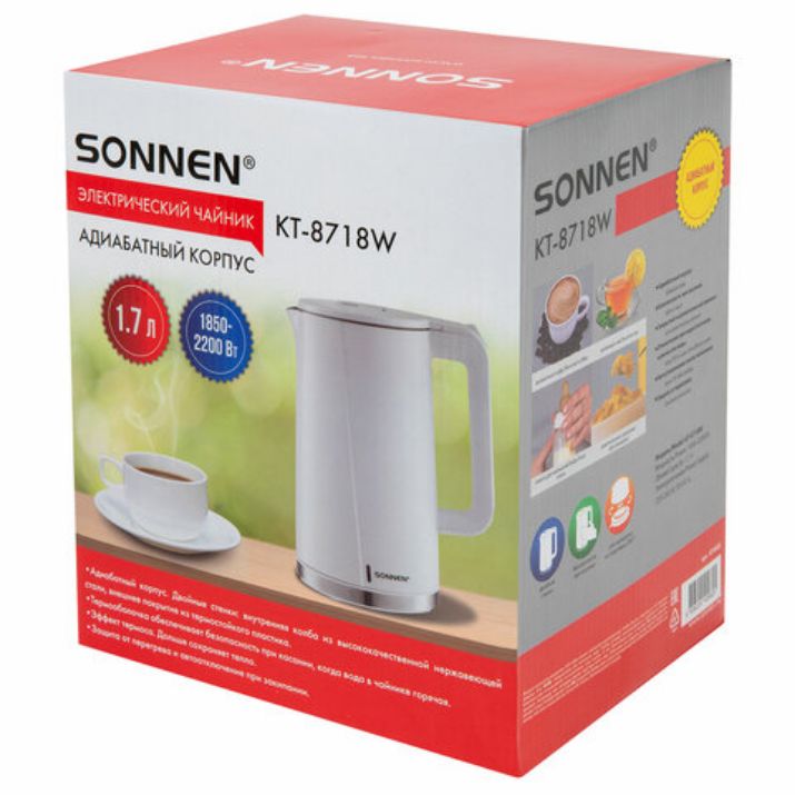 С чайником SONNEN KT-8718W вы всегда сможете насладиться приятными моментами в компании семьи и друзей за чашечкой чая!