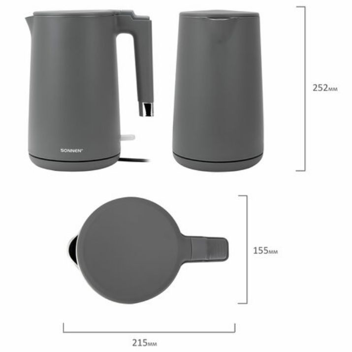 Чайник электрический с двойными стенками SONNEN KT-8719G, 1,5 л, 2200 Вт, графитовый, 454693