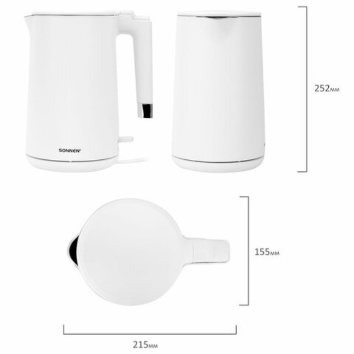 Чайник с двойными стенками SONNEN KT-8719W – идеальный выбор для тех, кто ценит комфорт, безопасность и безупречный дизайн.