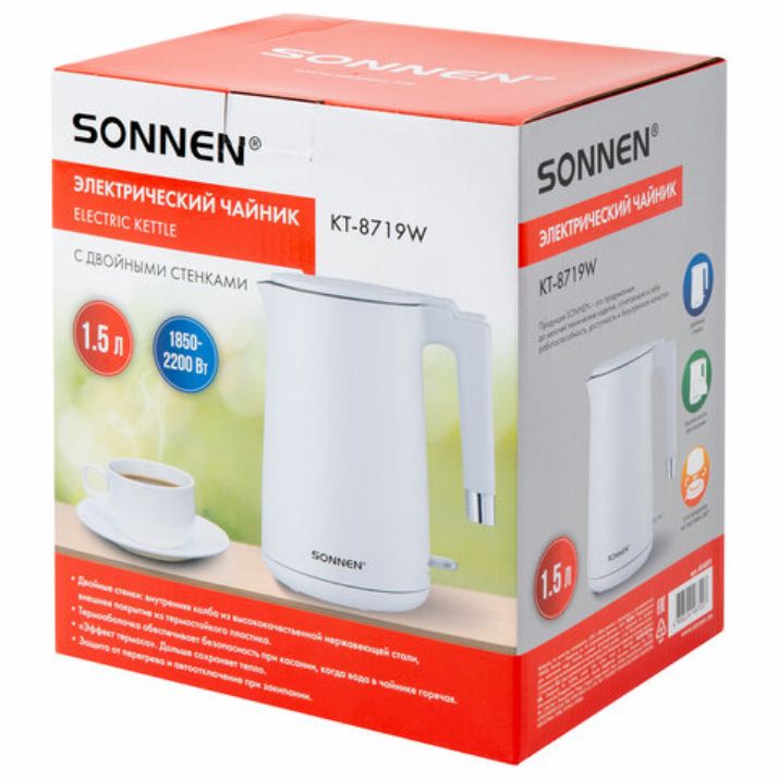 Оцените преимущества чайника с двойными стенками SONNEN KT-8719W! Приобретите его сейчас и наслаждайтесь комфортом каждый день!