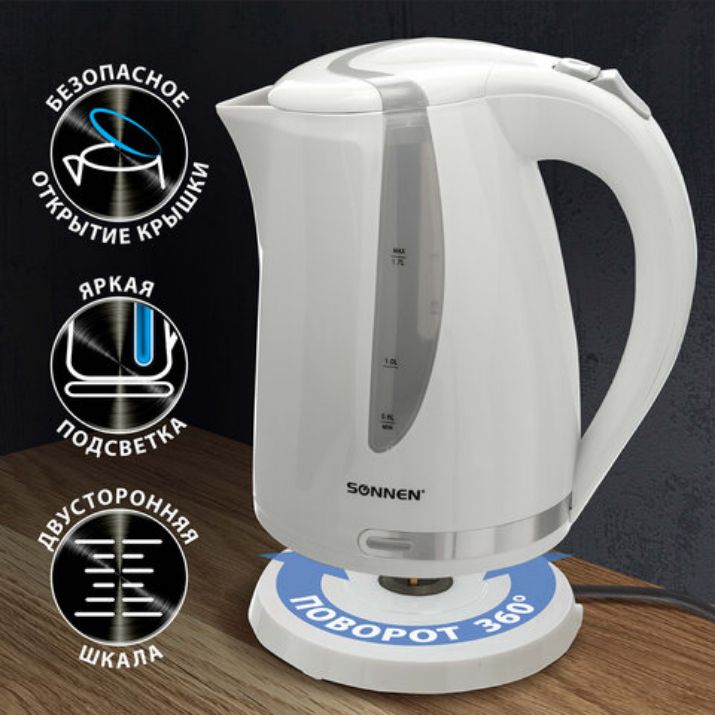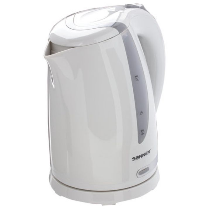 Чайник SONNEN KT-1743, 1,7 л, 2200 Вт, закрытый нагревательный элемент, пластик, белый, 453414