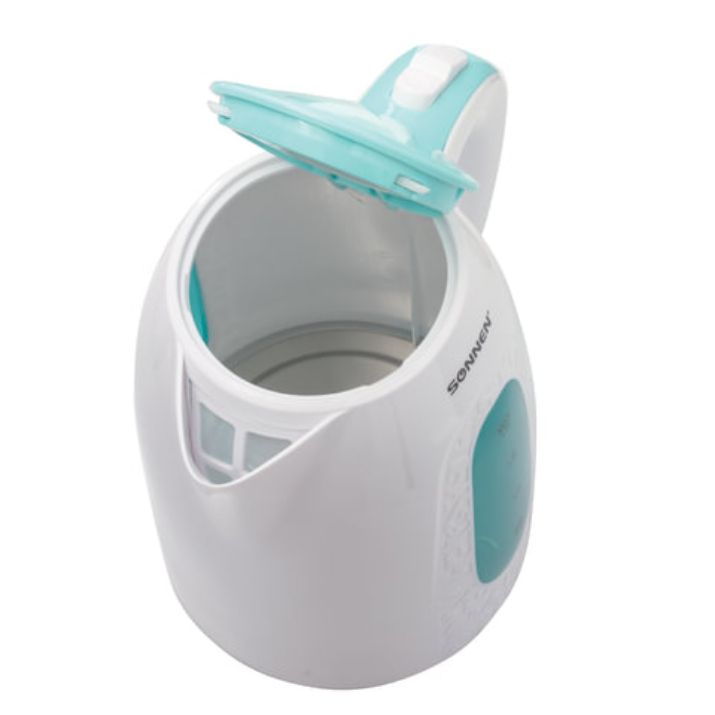 Чайник SONNEN KT-2016, 2 л, 2200 Вт, закрытый нагревательный элемент, пластик, белый/голубой, 453417