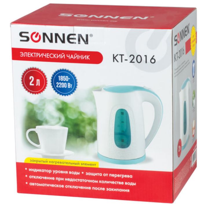 Чайник SONNEN KT-2016 имеет большой объем - 2 л! Не отказывайте себе в удовольствии и приобретите его прямо сейчас!