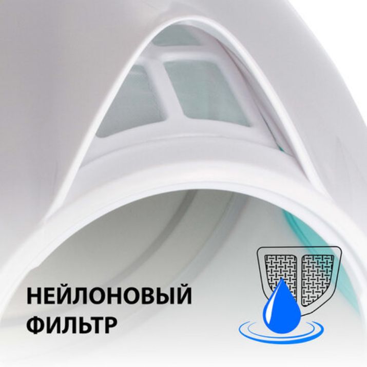 Он имеет увеличенный объем 2 литра, а мощность 2200 Вт позволяет вскипятить воду за считанные минуты. Индикатор уровня воды позволит с легкостью определить количество воды в чайнике. Сменный нейлоновый фильтр предотвратит попадание накипи в напиток. На ручке чайника находится кнопка открывания крышки, что делает удобнее его эксплуатацию. Автоотключение при недостаточном количестве воды и защита от перегрева делают данную модель чайника безопасной в использовании. Подсветка проинформирует о том, что чайник включен и процесс нагрева воды запущен. Шнур чайника, при необходимости, можно спрятать в специальный отсек, расположенный в подставке.