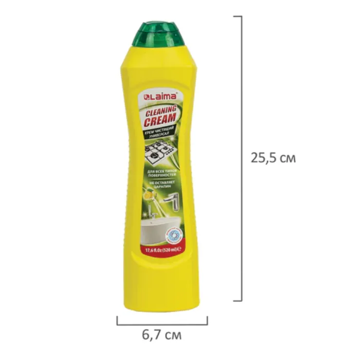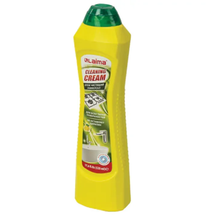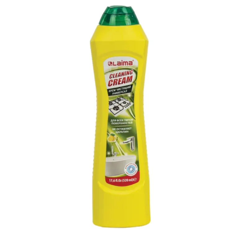 Благодаря специально разработанной формуле крем LAIMA PROFESSIONAL очищает и полирует раковину, плитку, ванную, кафель и кухонные предметы, не царапая их.