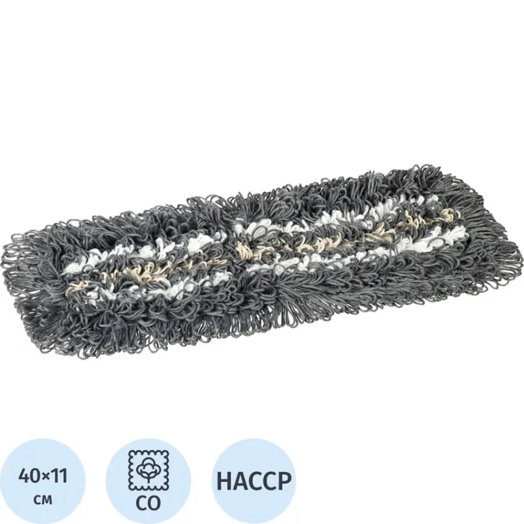 Насадка МОП из хлопка комбинированного с микрофиброй предназначена для плоской швабры-флаундера и используется для влажной уборки. Хлопковые волокна хорошо впитывают влагу, удерживают грязь и пыль, обеспечивая качественную очистку пола. Прямоугольная форма позволяет охватывать большую площадь поверхности и убирать загрязнения даже по углам. Насадка подходит для уборки небольших помещений, включая офисные, и снабжена цветовым кодированием для предотвращения перекрёстного загрязнения. Допускается стирка в машинке при температуре до 40 °C без агрессивных средств.