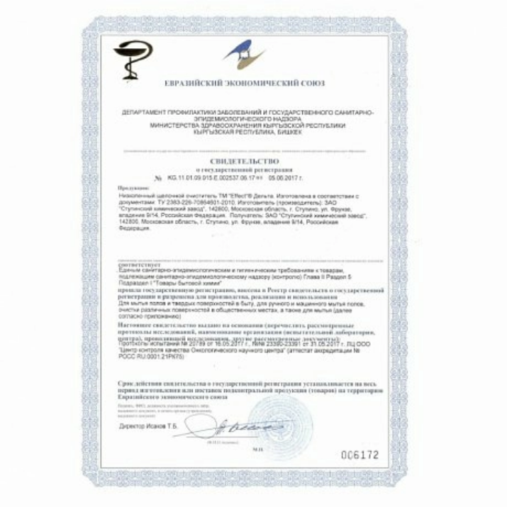 Развести продукт в воде в концентрации 0,5%-3% (50-300 мл на 10 л воды). Очистку производить вручную или с использованием поломоечных машин. Смыть водой.