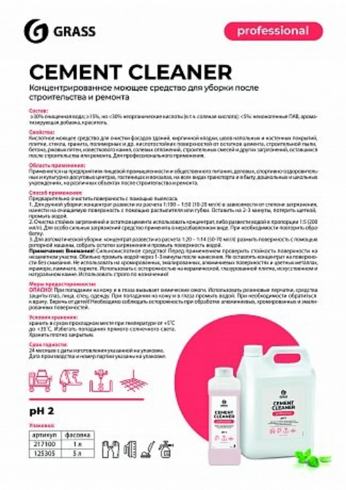 Кислотное моющее средство для очистки плитки, стекла, гранита, полимерных и других покрытий. Удаляет остатки цемента, бетона, ржавых пятен, известкового камня, строительных смесей и других загрязнений  оставшихся после строительства или ремонта.