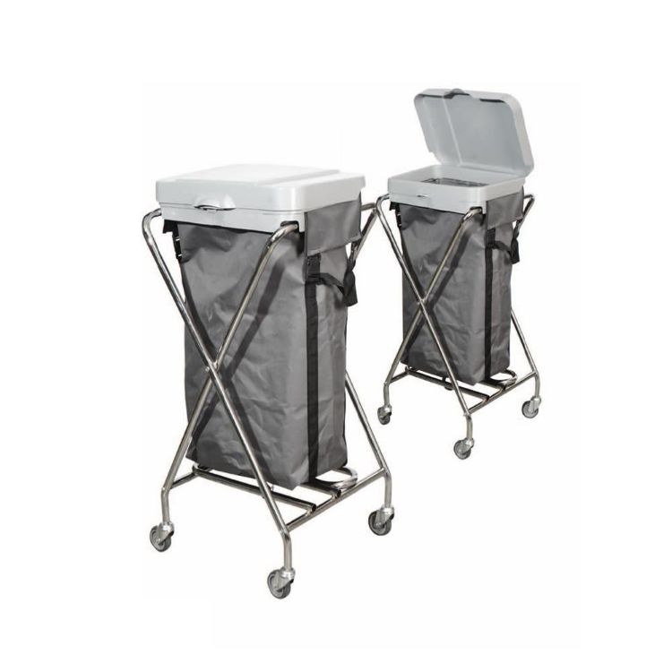 Тележка для гостиниц прачечных для белья или для мусора, общий объем 120 л., мешок съемный с ручками для переноса, рама металлическая хромированная, мешок - пвх, складной эргономичный дизайн, поворотные колеса 80мм., Турция