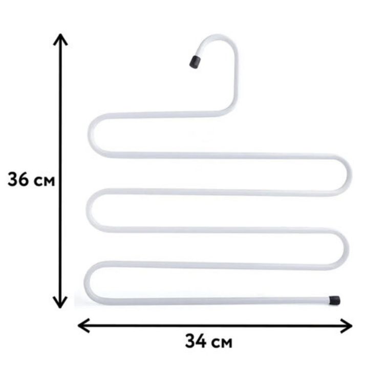 Предлагаем универсальную металлическую вешалку, которая поможет организовать пространство и создаст уют в доме. Вешалки для одежды изготовлены из прочного металла. Многоуровневая вешалка для брюк эстетичной изогнутой формы выдерживает до 6 кг благодаря усиленному металлическому профилю. Она не погнется даже под тяжестью зимних штанов или мокрых полотенец. Пластиковые заглушки на концах не позволят соскальзывать одежде с вешалки, а самому аксессуару с перекладины шкафа. Вешалка компактная и не занимает много места - ее размер 34 на 36 см. При этом на одной такой вешалке можно разместить до 5 предметов одежды. Подойдет для брюк, женских и мужских шарфов, широких декоративных шейных платков, галстуков и других аксессуаров гардероба. Вешалку "Змейка" можно использовать как для взрослой, так и для детской одежды.