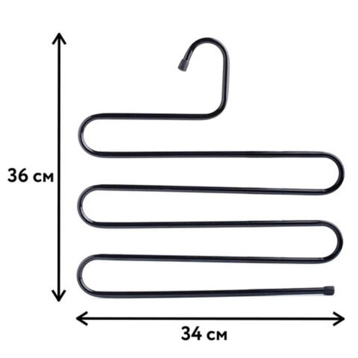 Предлагаем универсальную металлическую вешалку, которая поможет организовать пространство и создаст уют в доме. Вешалки для одежды изготовлены из прочного металла. Многоуровневая вешалка для брюк эстетичной изогнутой формы выдерживает до 6 кг благодаря усиленному металлическому профилю. Она не погнется даже под тяжестью зимних штанов или мокрых полотенец. Пластиковые заглушки на концах не позволят соскальзывать одежде с вешалки, а самому аксессуару с перекладины шкафа. Вешалка компактная и не занимает много места - ее размер 34 на 36 см. При этом на одной такой вешалке можно разместить до 5 предметов одежды. Подойдет для брюк, женских и мужских шарфов, широких декоративных шейных платков, галстуков и других аксессуаров гардероба. Вешалку "Змейка" можно использовать как для взрослой, так и для детской одежды.
