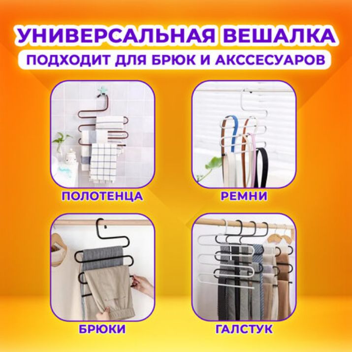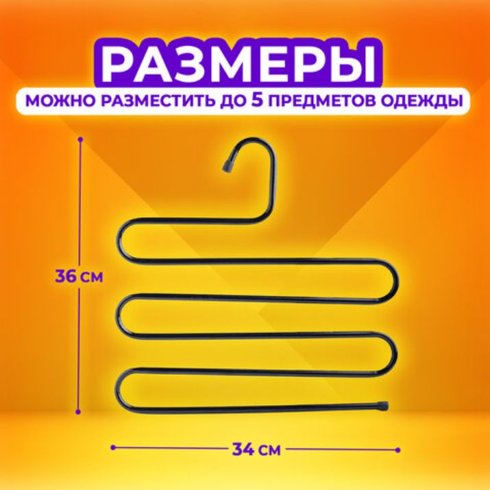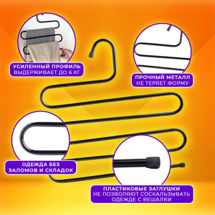 Вешалка для брюк и одежды "ЗМЕЙКА" позволяет повесить большее количество одежды на вешалку, что экономит время и облегчает поиск нужной вещи в шкафу.
