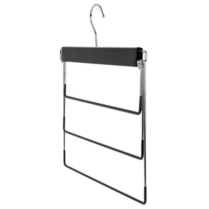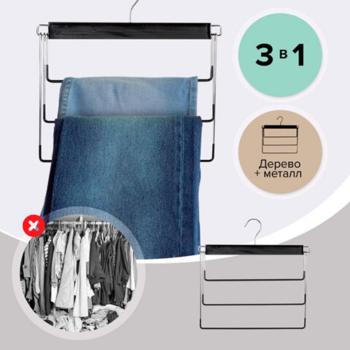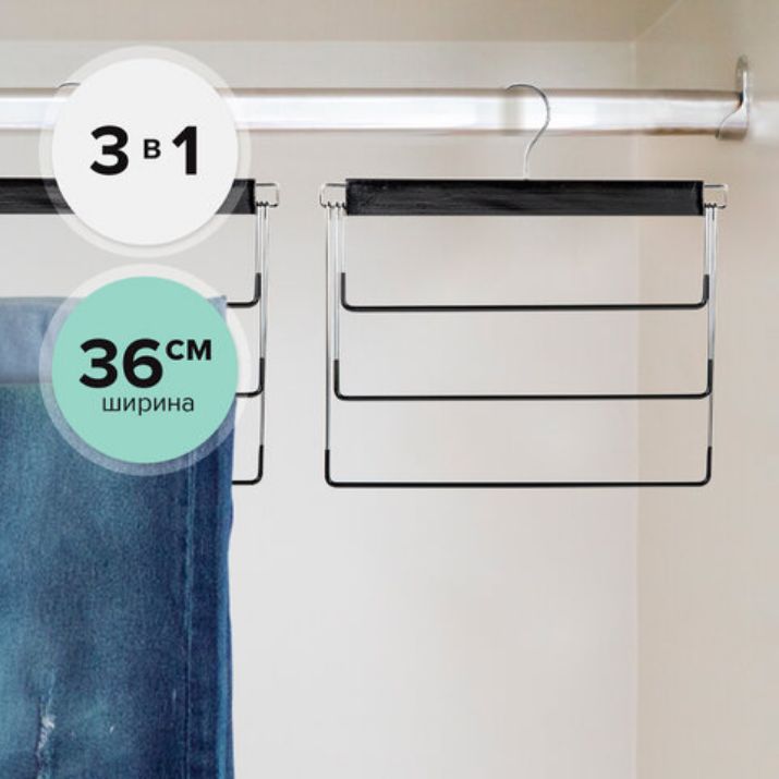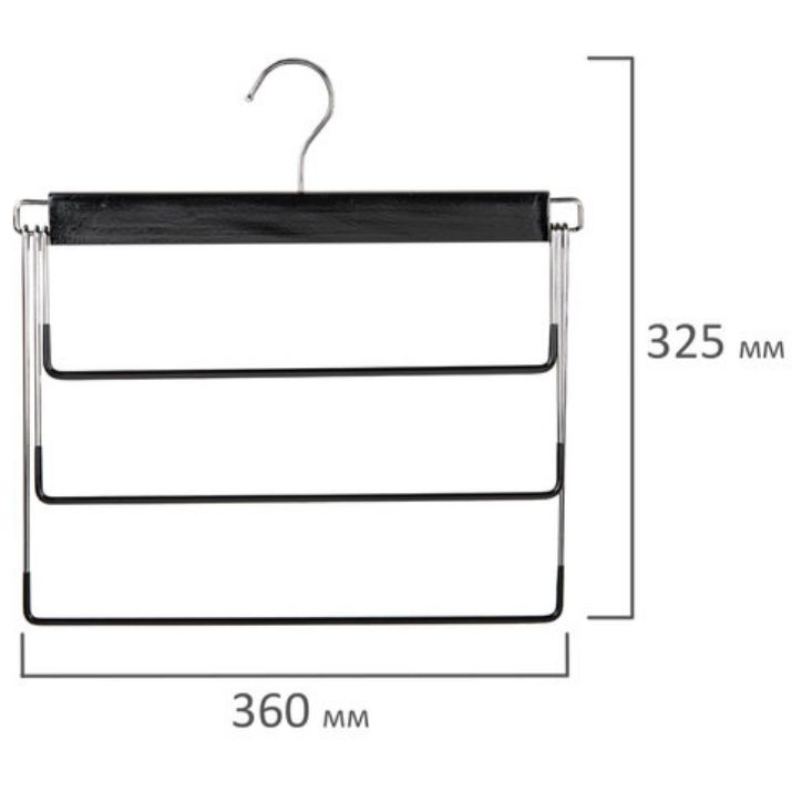 Данная вешалка BRABIX с ПВХ-покрытием идеальна для брюк и джинс. Имеет 3 уровня. Обеспечивает удобство и экономию пространства Вашего шкафа или гардеробной. Идеальна для небольших шкафов, фактически заменяет 3 вешалки, но при этом занимает меньший объем.