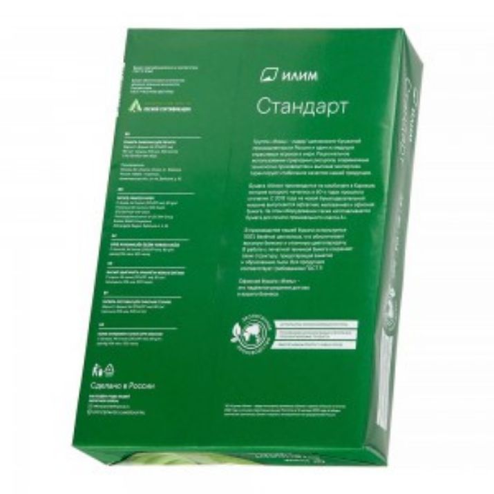 Офисная бумага «Илим Стандарт» для ежедневного применения. Универсальная бумага марки С с оптимальным соотношением белизны и непрозрачности обеспечивает чёткость контура и рисунка, яркость печати и цветопередачи. Идеально подходит для многостраничных документов, листовок, отчётов, прайс-листов и корреспонденции.
