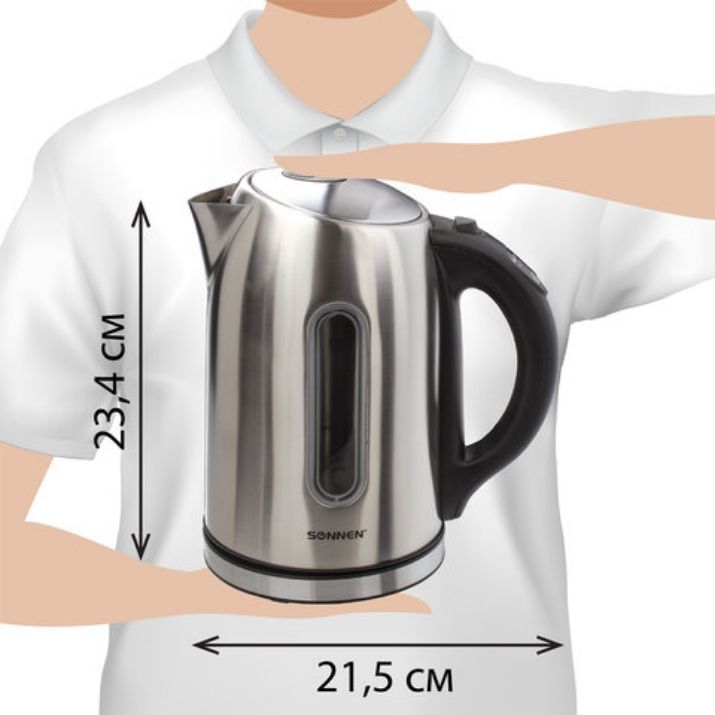 Чайник SONNEN KT-1740, 1,7 л, 2200 Вт, закрытый нагревательный элемент, терморегулятор, нержавеющая сталь, 453421