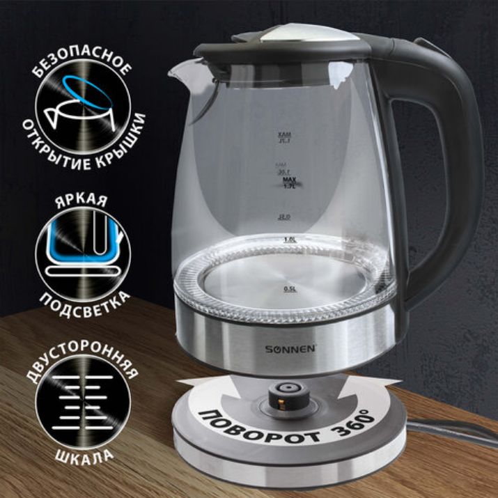 Чайник SONNEN KT-1788 идеальный вариант для дома и офиса. Благодаря стильному дизайну станет отличным украшением интерьера.
