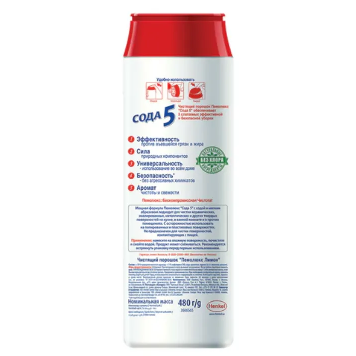 Мощная формула ПЕМОЛЮКС с содой и мягким абразивом подходит для чистки керамических, эмалированных, металлических и других твердых поверхностей на кухне, в ванной комнате и прочих помещениях. С осторожностью использовать на полированных и пластиковых поверхностях. Не предназначен для чистки поверхностей, контактирующих с пищей.