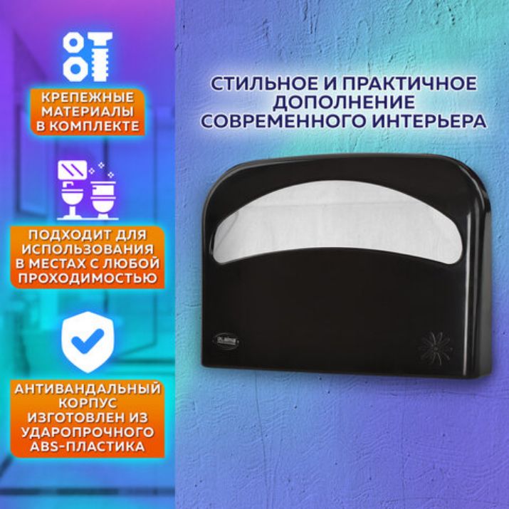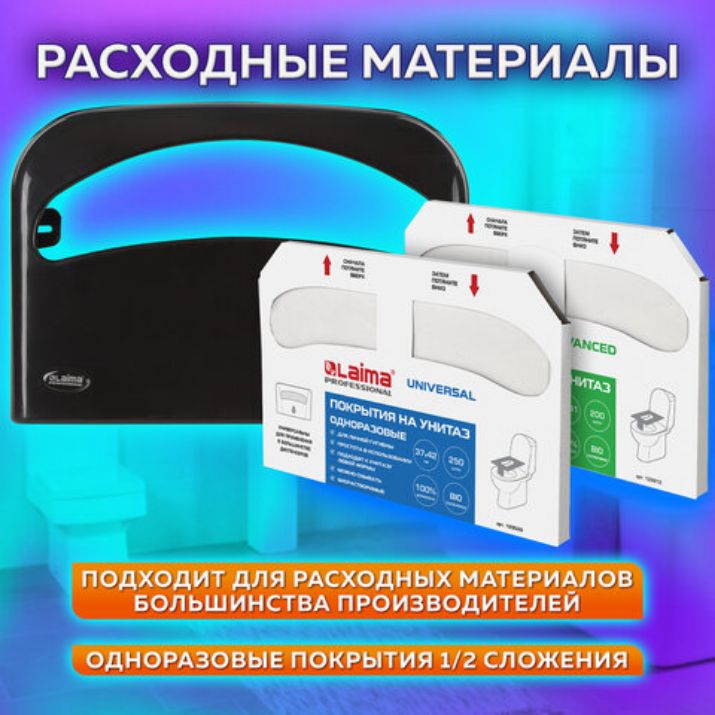 Диспенсер для покрытий на унитаз LAIMA PROFESSIONAL ORIGINAL (V1), 1/2 сложения, черный, 605786