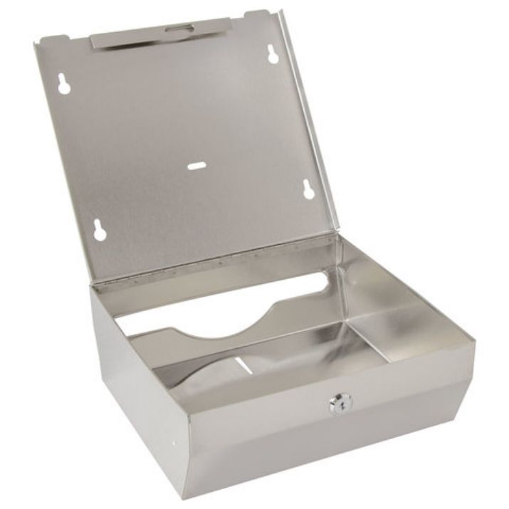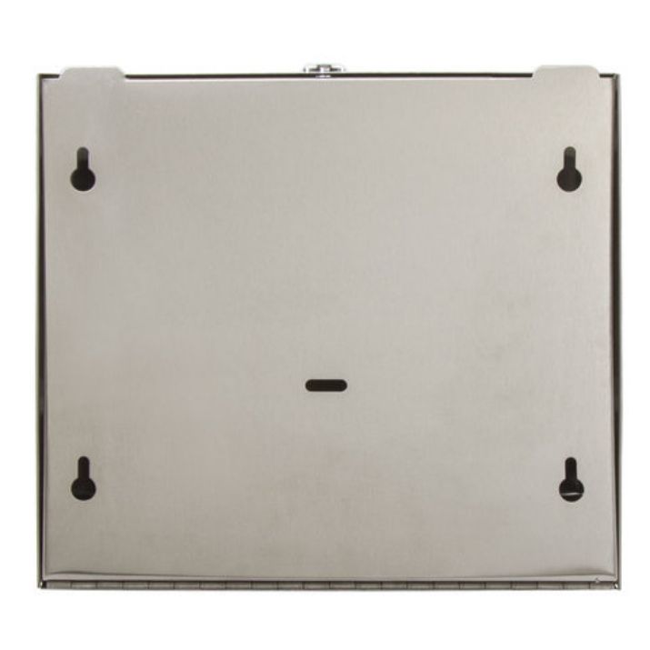 Диспенсер предназначен для подачи бумажных полотенец interfold, Z- и W-сложения. Антивандальный корпус изготовлен из нержавеющей стали. Имеется окошко для контроля остатка полотенец. Сочетается с расходными материалами других производителей. Оборудован замком с ключом. В комплект входят крепежные материалы для установки. Размер - 260х275х103 мм.