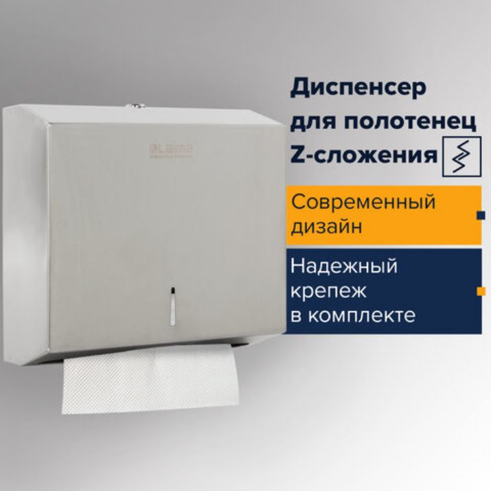 Диспенсер для полотенец LAIMA PROFESSIONAL BASIC (H2) Z-сложения, нержавеющая сталь, матовый, 605050