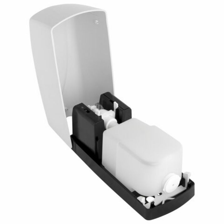 Объем – 1 л. Антивандальный корпус изготовлен из ударопрочного ABS-пластика. Обеспечивает высокую гигиеничность. Выдача мыла осуществляется экономичными порциями. Сочетается с расходными материалами других производителей. Открывается при нажатии на крышку (фронтальная часть откидывается вниз), закрывается путем захлопывания. Оснащен световым индикатором замены элементов питания (осуществляется от 6 батареек типа АА). Имеет 3 режима дозирования: 1 капля, 2 капли или 3 капли подряд. Чувствительность сенсора – до 8 см. Размер – 265х124х120 см. Крепежные материалы в комплекте. Гарантия –– 12 месяцев. Рекомендованное расстояние между диспенсером и поверхностью – не менее 15 см.
