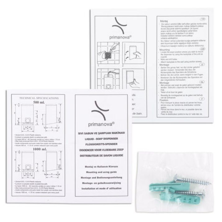 Дозатор для жидкого мыла и антисептика PRIMA NOVA, НАЛИВНОЙ, белый, 0,5 л, SD01