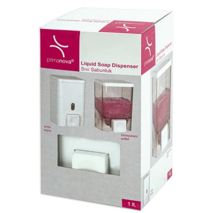 Дозатор для жидкого мыла и антисептика PRIMA NOVA, НАЛИВНОЙ, белый, 1,0 л, SD03