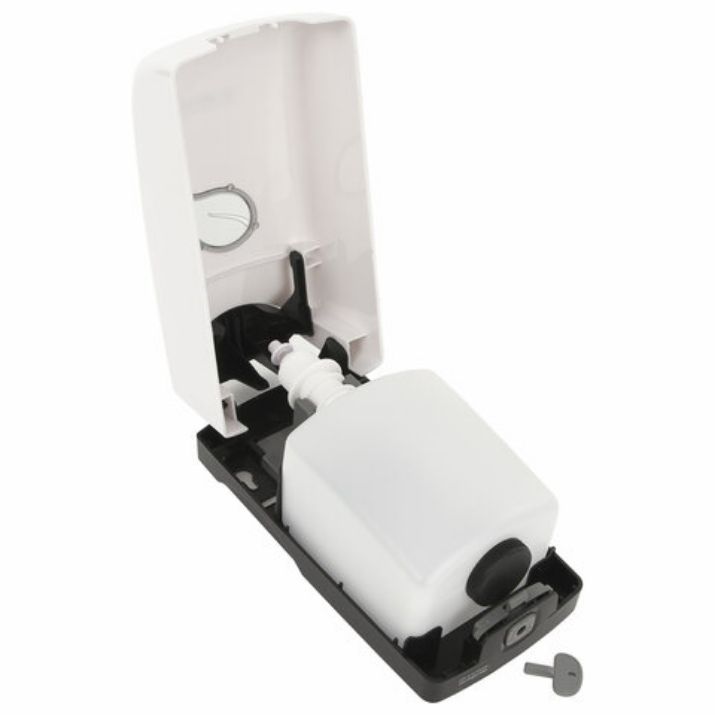 Внимание! Чтобы открыть дозатор, вставьте ключ в замок, поверните ключ против часовой стрелки и затем нажмите на кнопку замка.