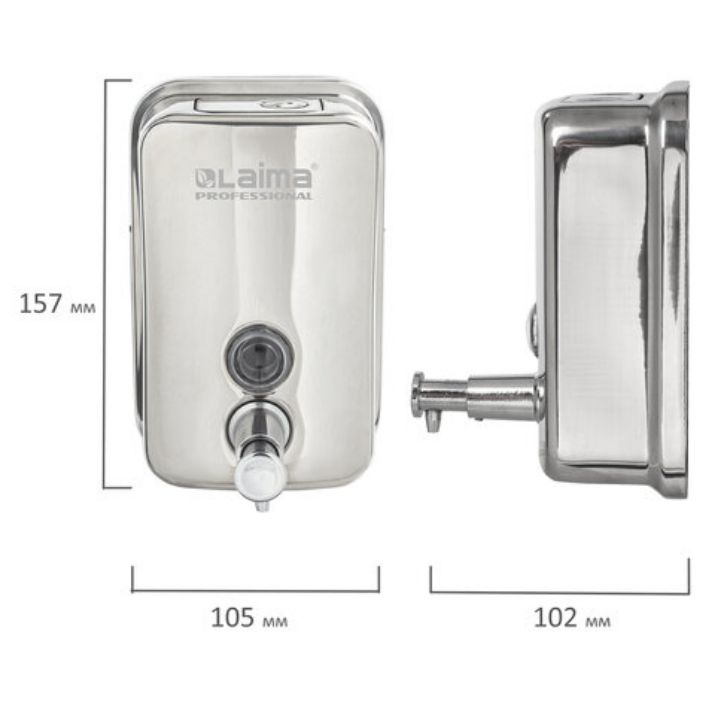 Дозатор для жидкого мыла LAIMA PROFESSIONAL INOX (гарантия 3 года), 0,5 л, нержавеющая сталь, зеркальный, 605394