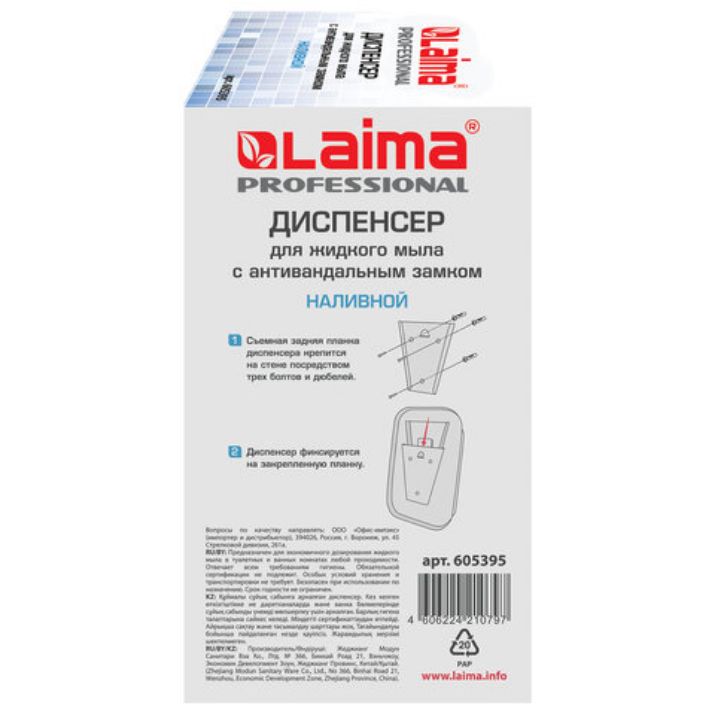 Дозатор для жидкого мыла LAIMA PROFESSIONAL подходит для использования в местах с любой проходимостью, таких как туалетная комната в ресторане, офисе, торговом центре,