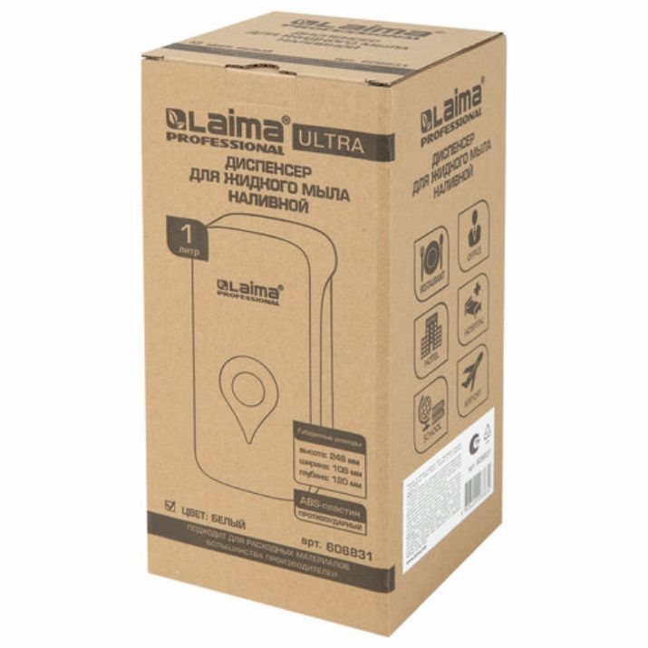Дозатор для жидкого мыла ULTRA LAIMA PROFESSIONAL, НАЛИВНОЙ, 1 л, белый, ABS-пластик, 606831