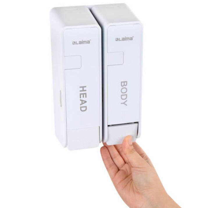 Дозатор для жидкого мыла/шампуня/геля LAIMA ULTRA двойной 2х0,38 л. Благодаря конструкции из двух дозаторов, максимально удобен для использования в душевых комнатах с шампунем и гелем. Подойдет и для стандартного применения с обычным жидким мылом.