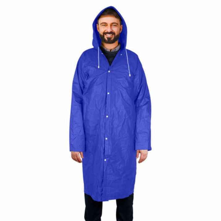 Дождевик плащ синий на кнопках, EVA, многоразовый прочный, чехол в комплекте, универсальный размер, SHAMAANI (ШАМААНИ), 610931