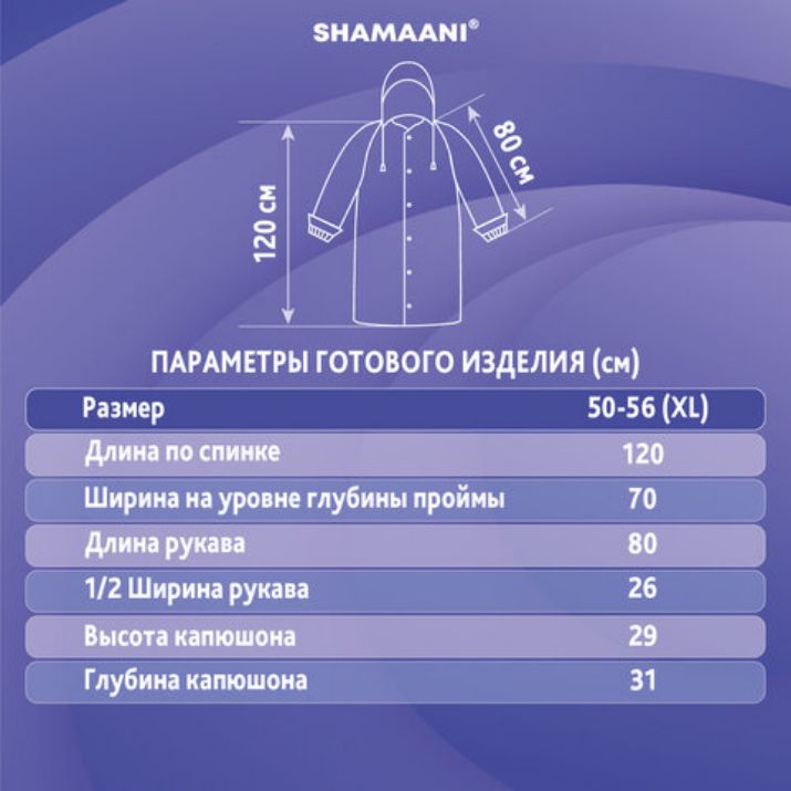 Дождевик-плащ SHAMAANI на кнопках с капюшоном предназначен для защиты от дождя и повышенной влажности воздуха. Идеально подойдет для работы на улице, отдыха на природе, рыбалки, пикника и городских прогулок.