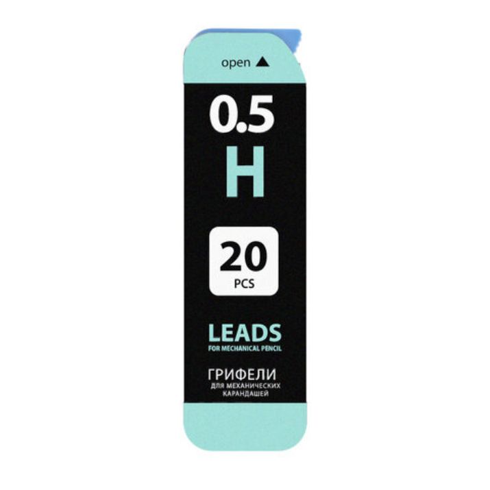 Грифели имеют твердость Н. Длина изделия – 60 мм, а диаметр – 0,5 мм. Цвет – серый. Комплект – 20 шт. Товар поставляется в диспенсере, имеется индивидуальная упаковка – пластиковая туба.