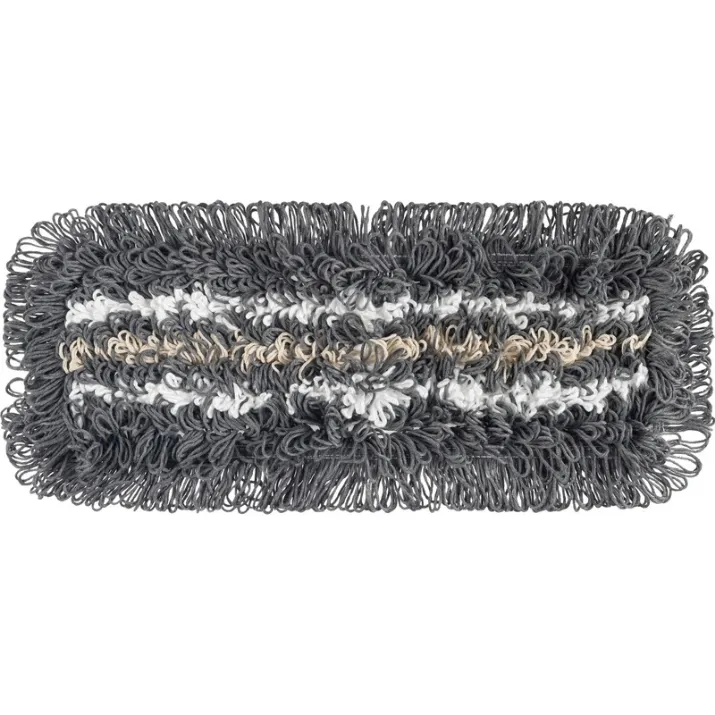 Профессиональный моп с серой износостойкой пряжей и белыми микроволоконными индикаторами для генеральных уборок и ежедневного использования, обеспечивает максимальное впитывание с первого применения.
