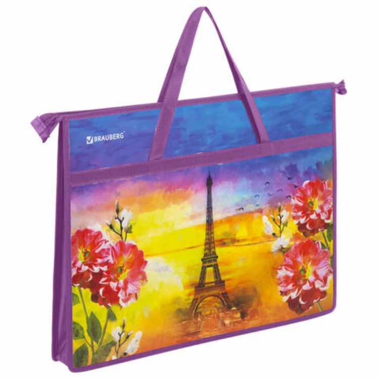 Папка для рисунков и чертежей с ручками BRAUBERG А3, пластик, молния сверху, "Paris", 270147