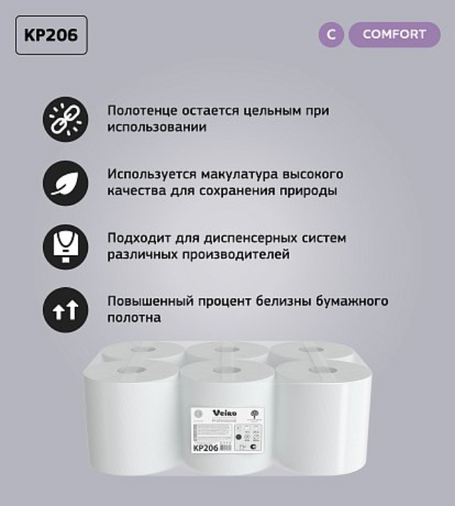 Полотенца бумажные с центральной вытяжкой Veiro Professional Comfort, 2 слоя (KP206)