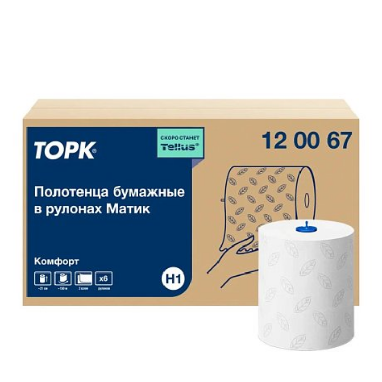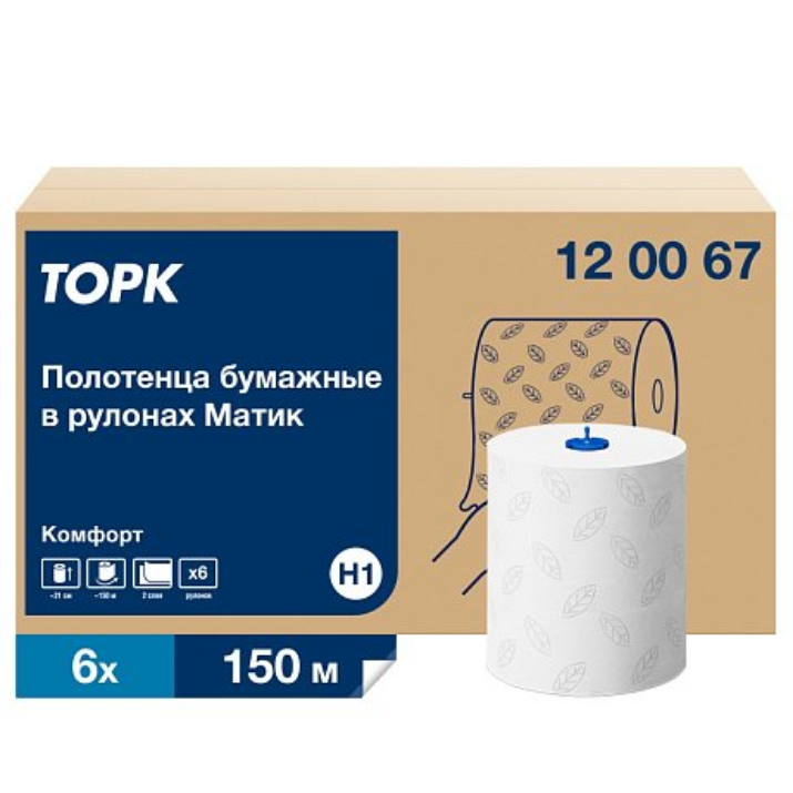 Полотенца бумажные ТОРК Матик Комфорт, в рулонах Н1, 150 м, 2 слоя (120067)