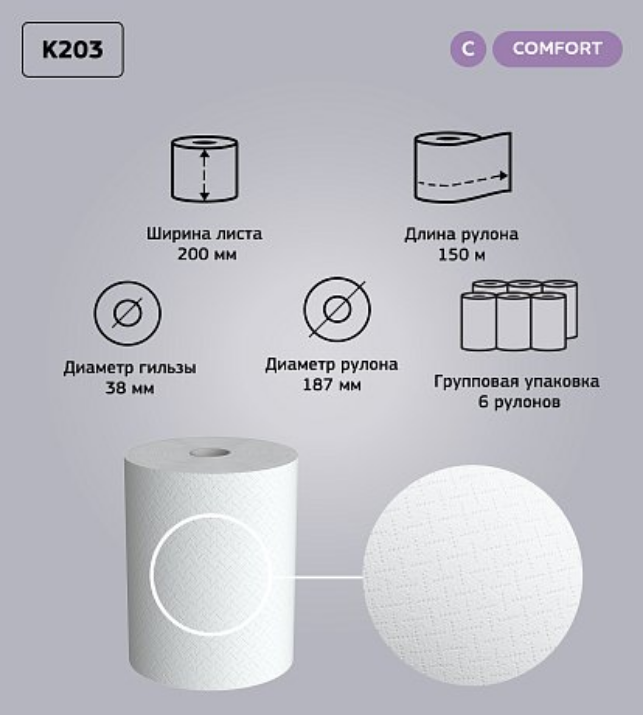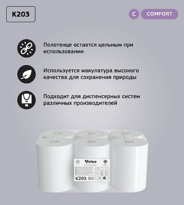 Полотенца бумажные в рулонах Veiro Professional Comfort, 2 слоя (K203)