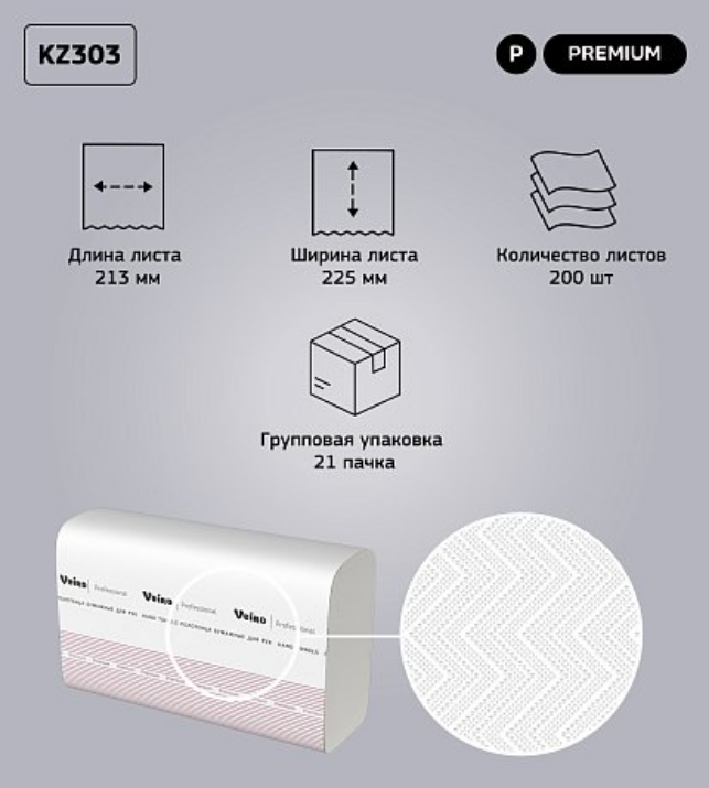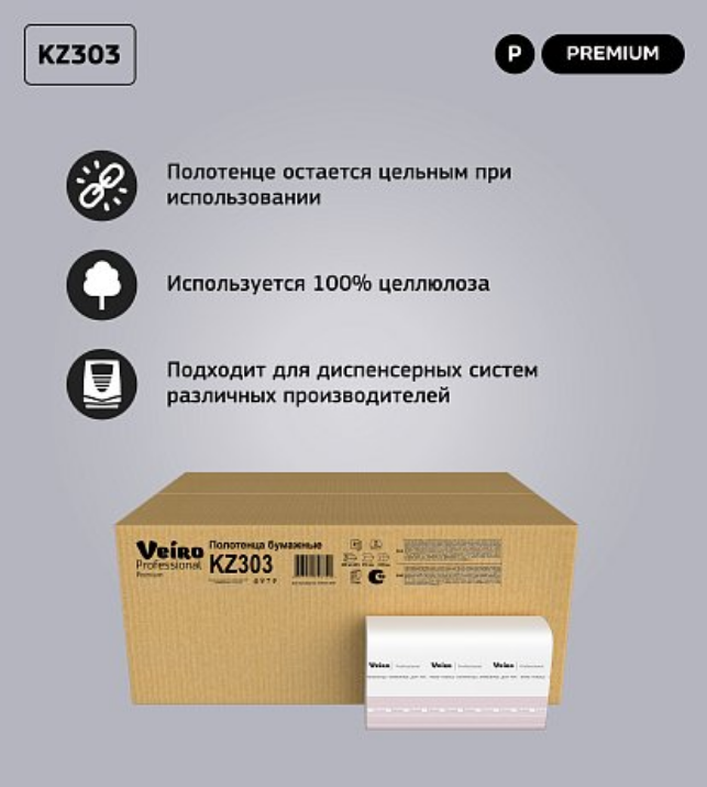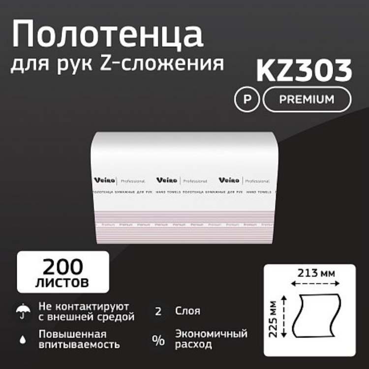 Полотенца бумажные Veiro Professional Premium, Z-сложение, 2 слоя, 200 шт/упак (KZ303)