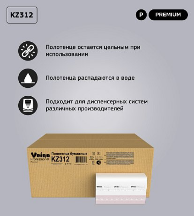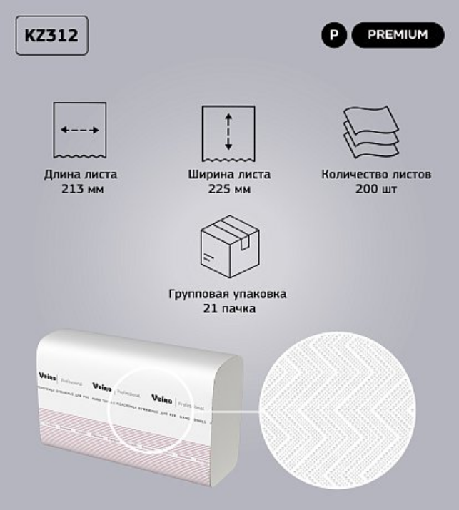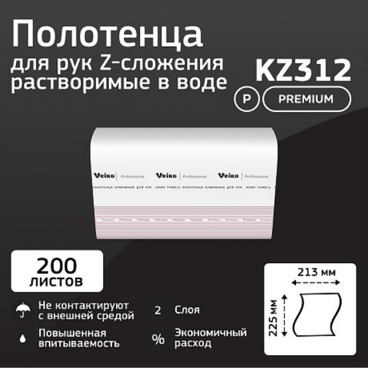 Полотенца бумажные Veiro Professional Premium, Z-сложение, 2 слоя, 200 шт/упак (KZ312)