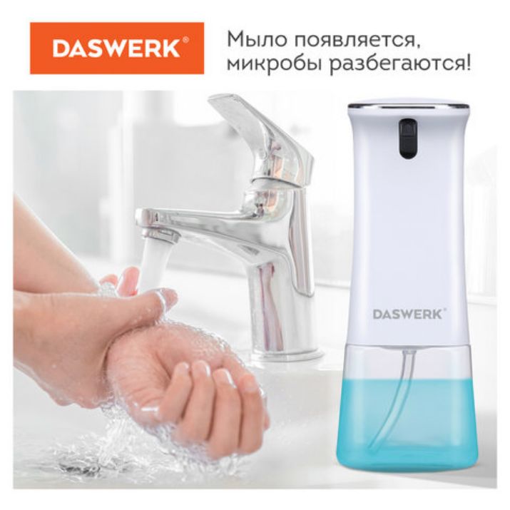 Сенсорный бесконтактный диспенсер для жидкого мыла/средства для посуды DASWERK обеспечивает максимальную гигиеничность и комфорт при мытье рук и мытье посуды.