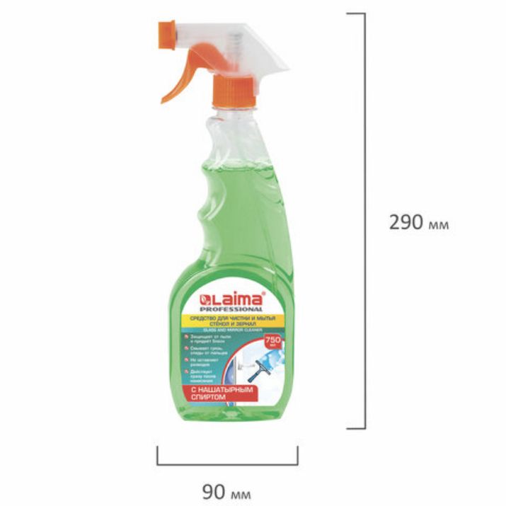 Средство для мытья стекол и зеркал LAIMA PROFESSIONAL с нашатырным спиртом эффективно для мытья оконных стекол, витрин, зеркал, автомобильных стекол, кафеля, хрусталя, фарфора, фаянса, экранов телевизоров и мониторов.