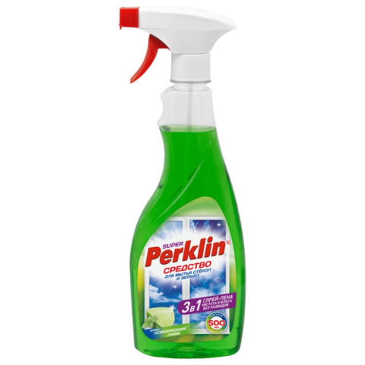 Средство для мытья стекол, зеркал и кафеля PERKLIN SUPER может быть использовано в виде пены или спрея. Эффективно для мытья оконных стекол, зеркал, кафеля, автомобильных стекол, витрин, хрусталя, фарфора, для протирки экранов телевизоров и мониторов.