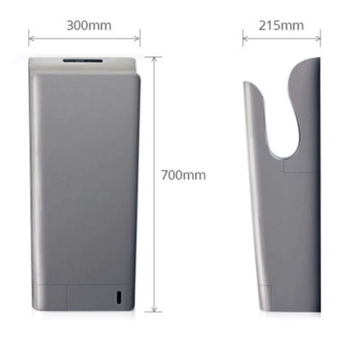 Сушка рук за 8 секунд. Двухсторонняя система обдува рук состоит из 300 форсунок, из которых каждую секунду проходит до 30 литров воздуха со скоростью 95 м/сек. В результате плоские потоки воздуха "срезают" воду с рук.