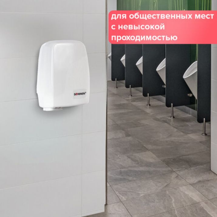 Сушилка для рук SONNEN HD-120, 1000 Вт, пластиковый корпус, белая, 604190
