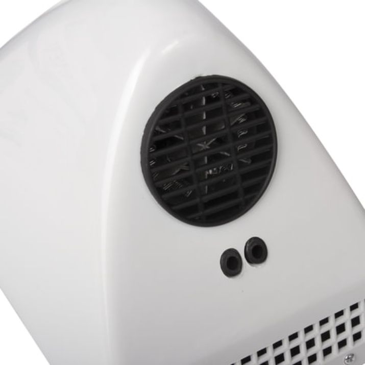 Мощность 850 Вт обеспечивает время сушки рук за 35 секунд. Стандарт IPX1 гарантирует защиту от брызг. Включается и выключается сушилка автоматически при помощи инфракрасного сенсора. Пластиковый корпус в белом цвете впишется в любой интерьер. В комплект входит набор для монтажа: шурупы с пластиковыми дюбелями, кронштейн и шаблон установки для удобства разметки точек крепления.