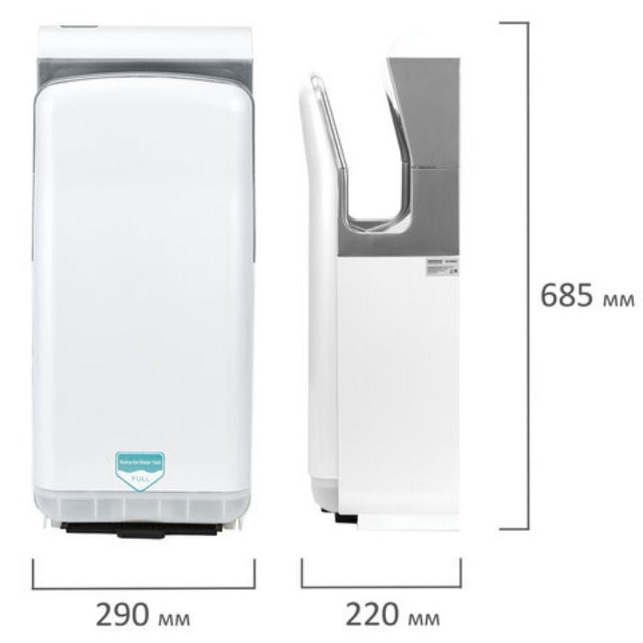 Мощность 2000 Вт обеспечивает время сушки рук за 10 секунд. Мощный поток воздуха подается на руки из тонких форсунок с двух сторон, в результате чего создается эффект срезания капель воды, и руки становятся сухими за несколько секунд, что обеспечивает максимальный уровень комфорта для пользователя. Ультрафиолетовая обработка уничтожает бактерии при сушке. Данную модель отличает наивысший для подобного типа устройств класс влагозащиты – IPX4, что означает, что устройство защищено от брызг с любых сторон. Это полностью исключает вероятность короткого замыкания из-за попадания воды на корпус. Устройство оснащено каплесборником для получаемой после сушки рук воды и воздушным фильтром для очистки подаваемого воздуха. Корпус электросушителя изготовлен из ударопрочного пластика. Современный дизайн SONNEN HD-M6667 подчеркнет респектабельность и станет украшением любого интерьера. Подойдет для установки в местах с высокой проходимостью. В комплект поставки входит набор для крепления к стене. Подключается к сети 220V стандартной евровилкой.