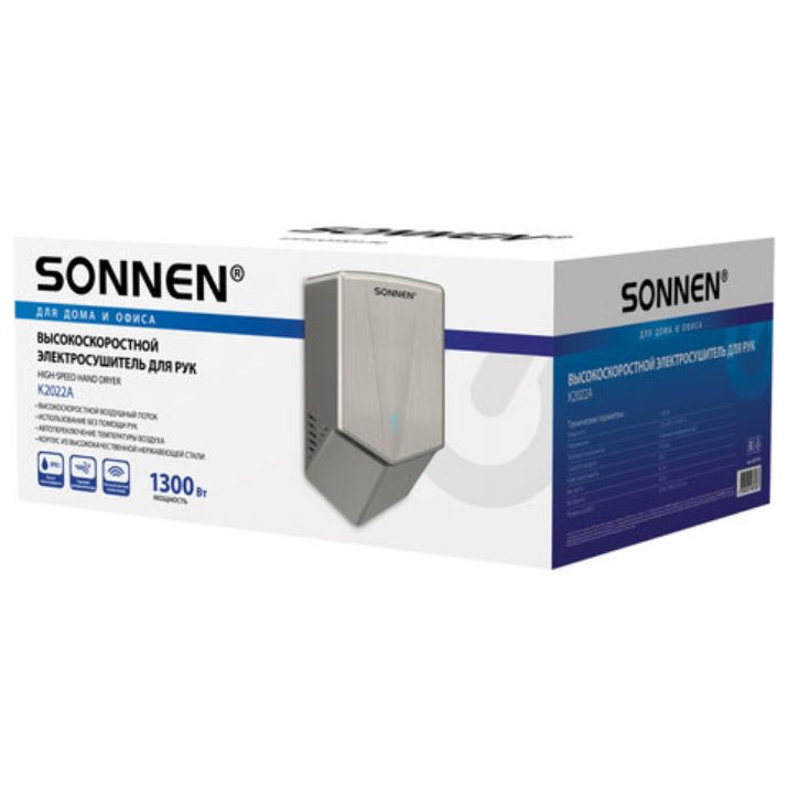 Электросушилка для рук SONNEN KA2022A обладает рядом преимуществ: компактность, высокая гигиеничность и удобство в использовании.